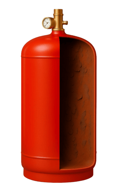 When a cylinder is filled or recharged with FK-5-1-12, a small amount of atmospheric moisture can be introduced. This will generate acid which begins to corrode the inside a carbon-steel cylinder, shortening its life and increasing the risk of mechanical failure.